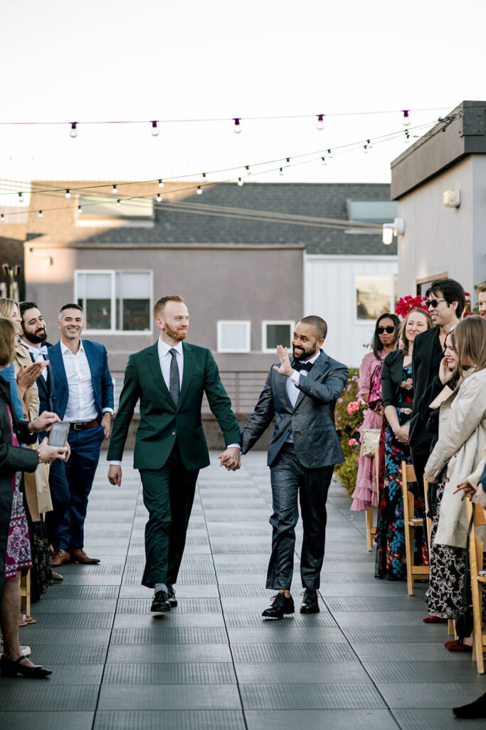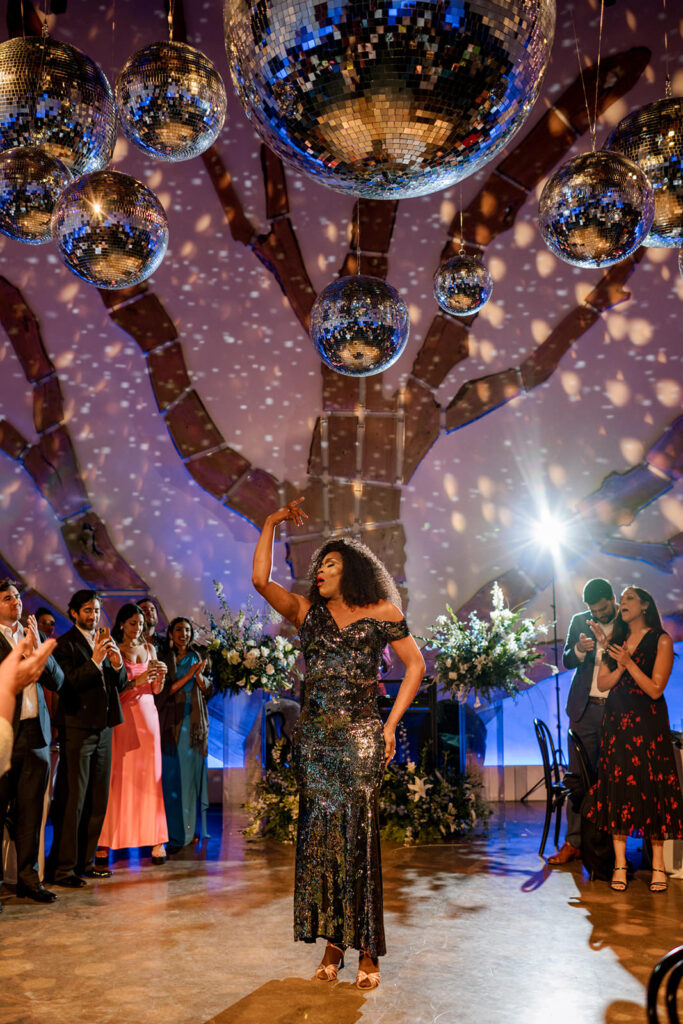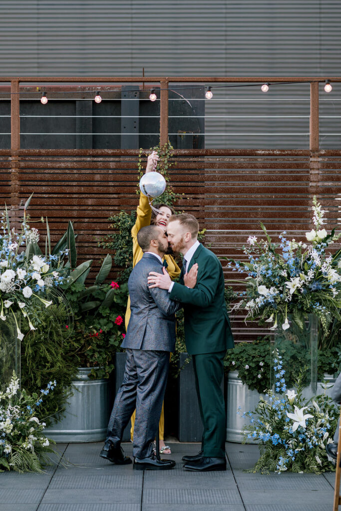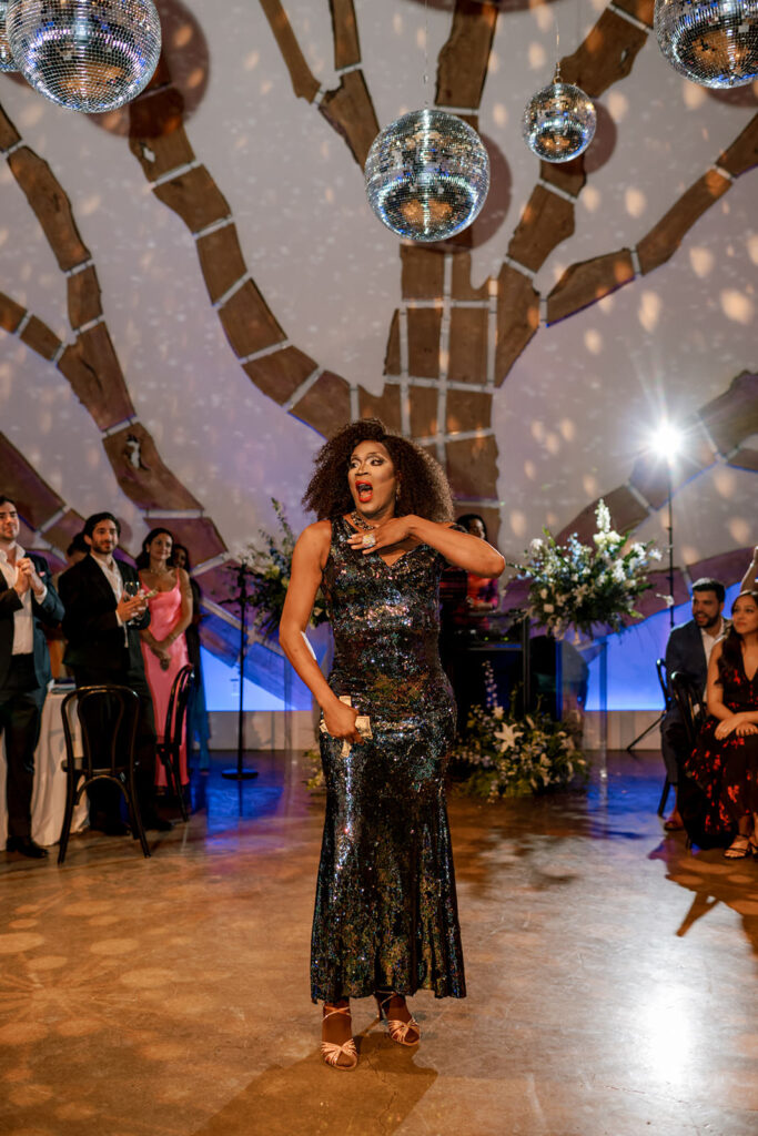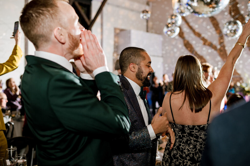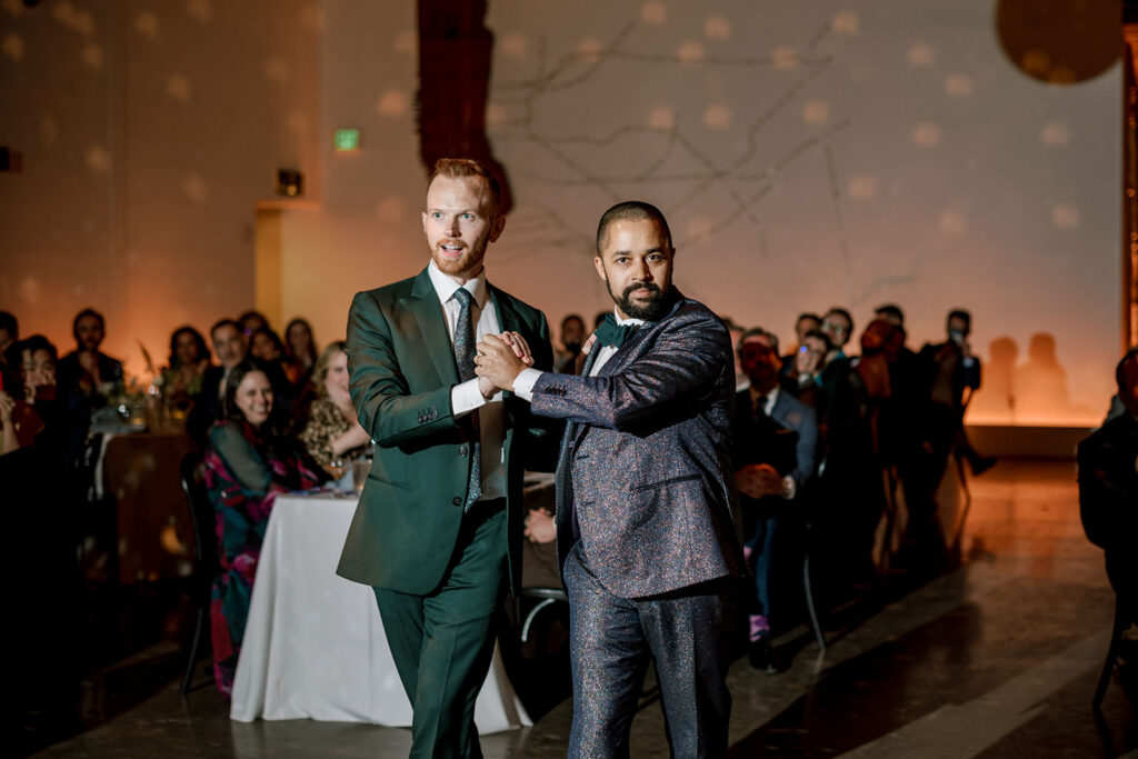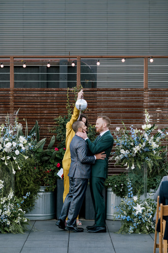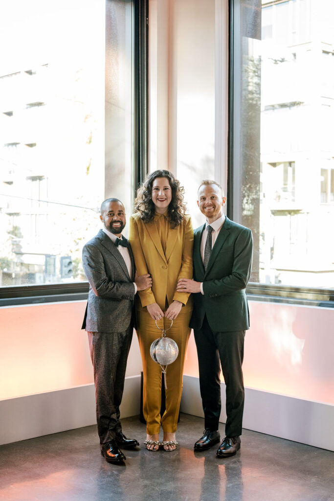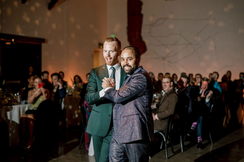 J + Q’s San Francisco wedding was nothing short of a celebration of love, laughter, and a little bit of sparkle, okay, a lot of sparkle. From their custom suits, insane disco ball installation, incredible performance by Miss Rahni, and showtunes singalongs, it was an epic party!