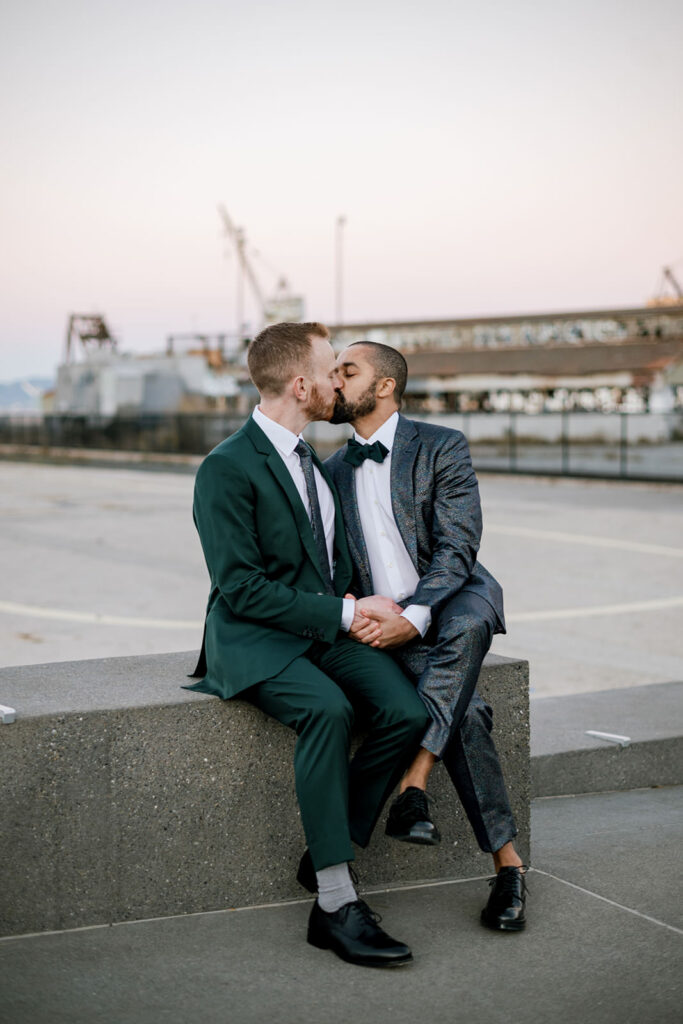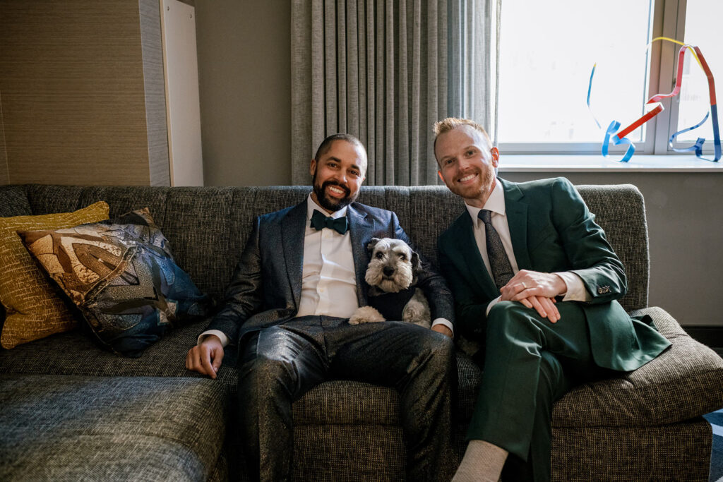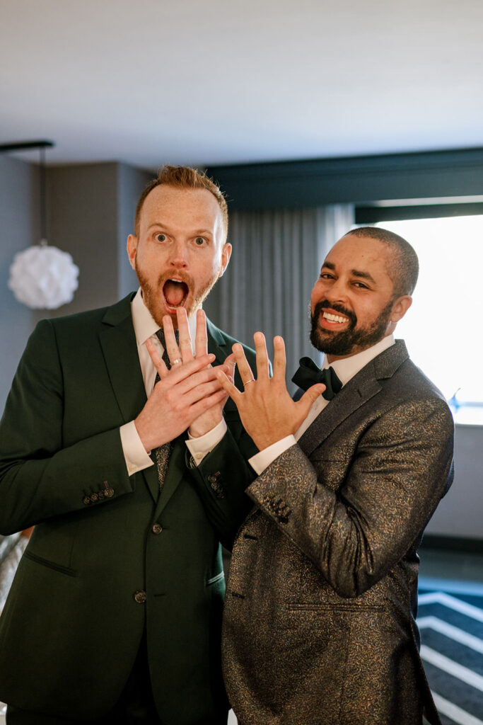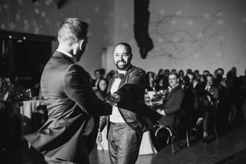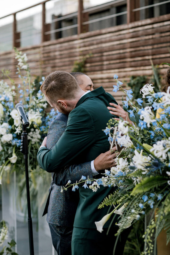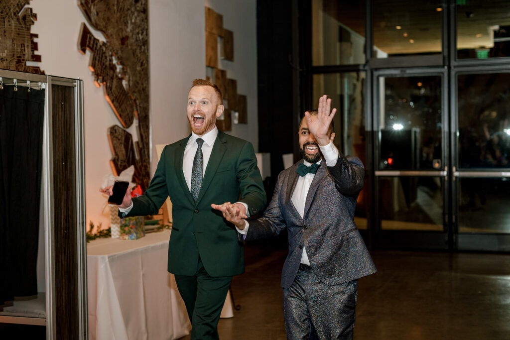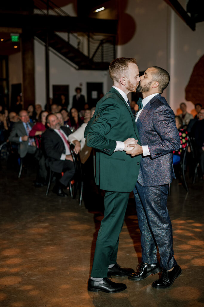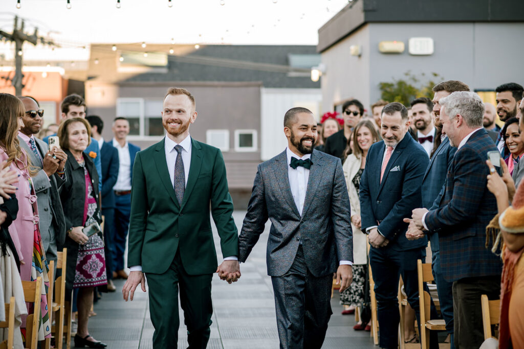 J + Q’s San Francisco wedding was nothing short of a celebration of love, laughter, and a little bit of sparkle, okay, a lot of sparkle. From their custom suits, insane disco ball installation, incredible performance by Miss Rahni, and showtunes singalongs, it was an epic party!