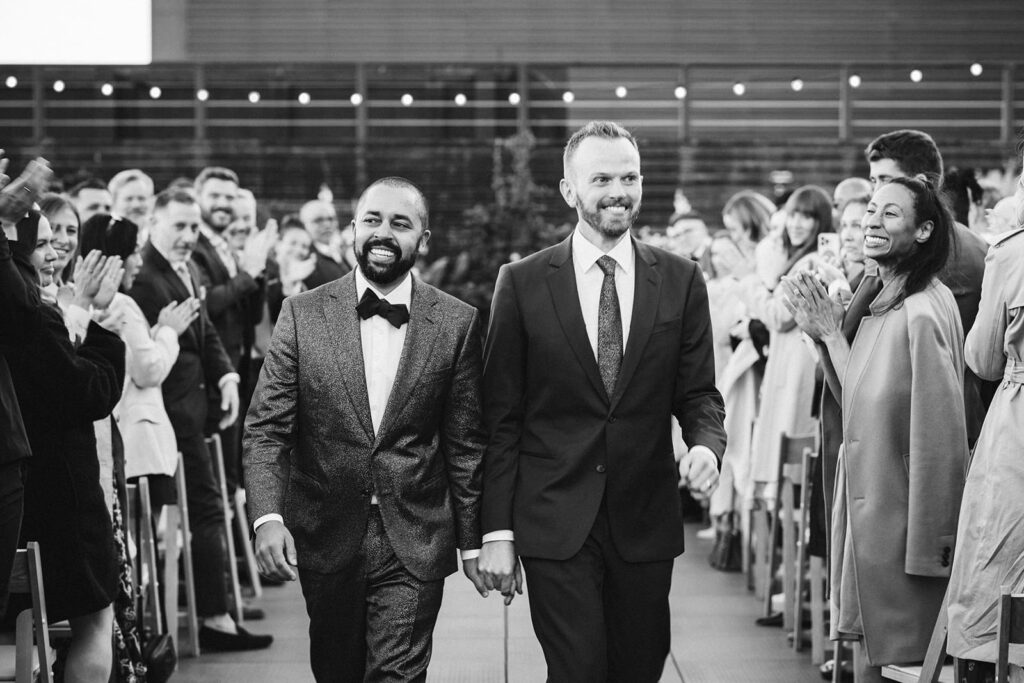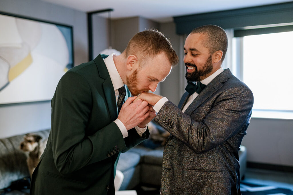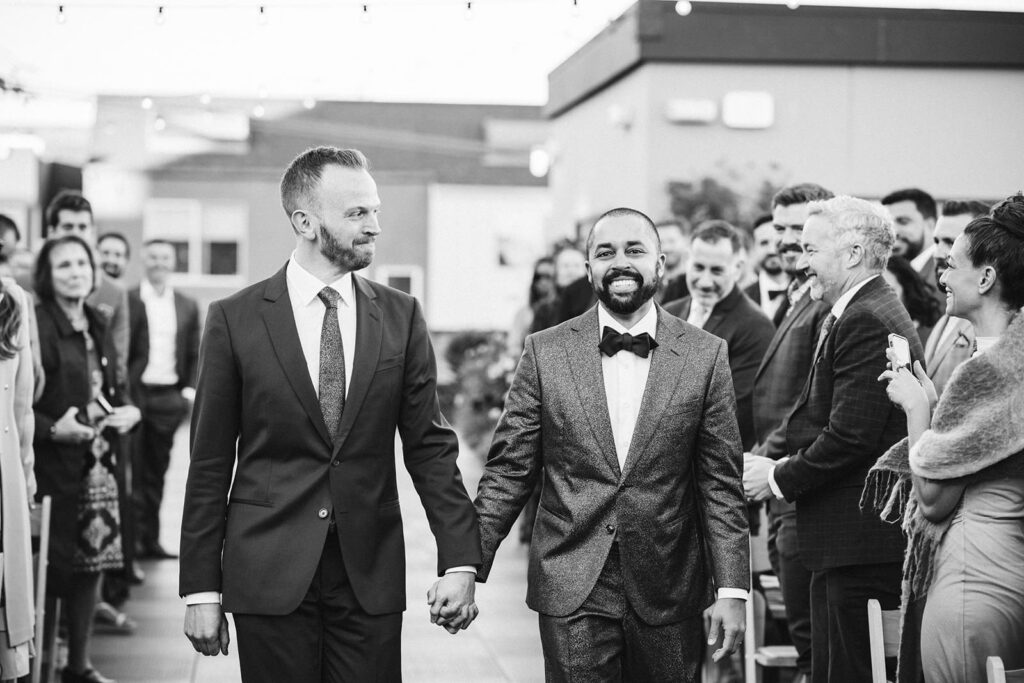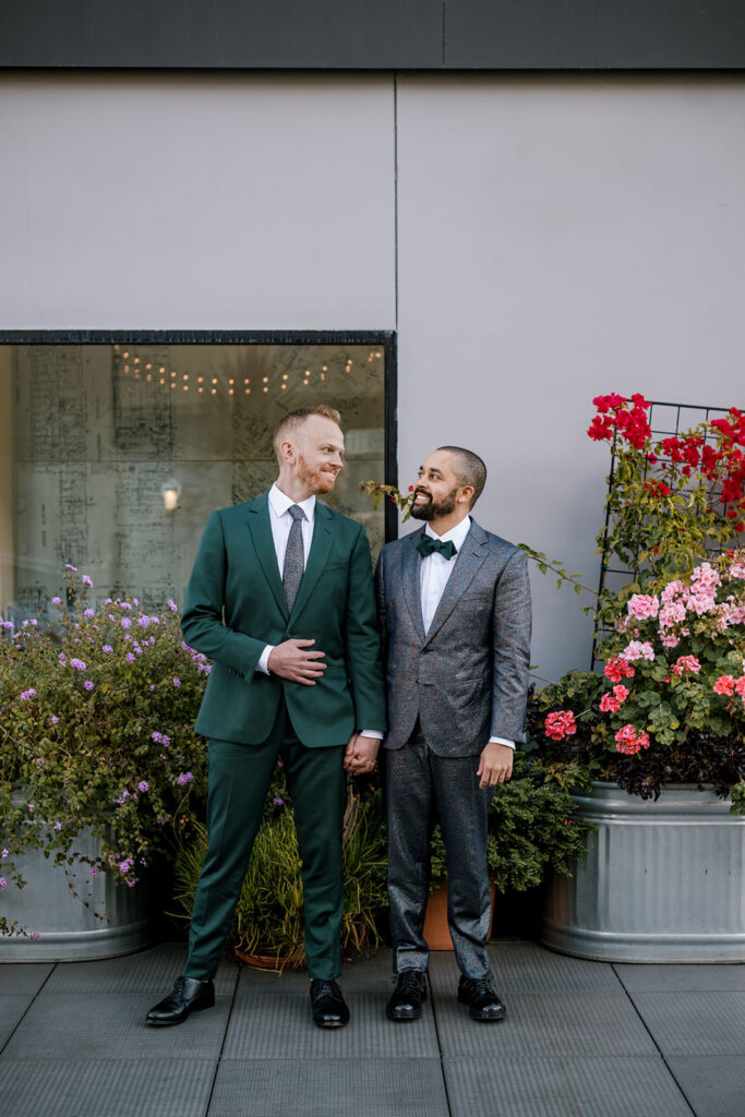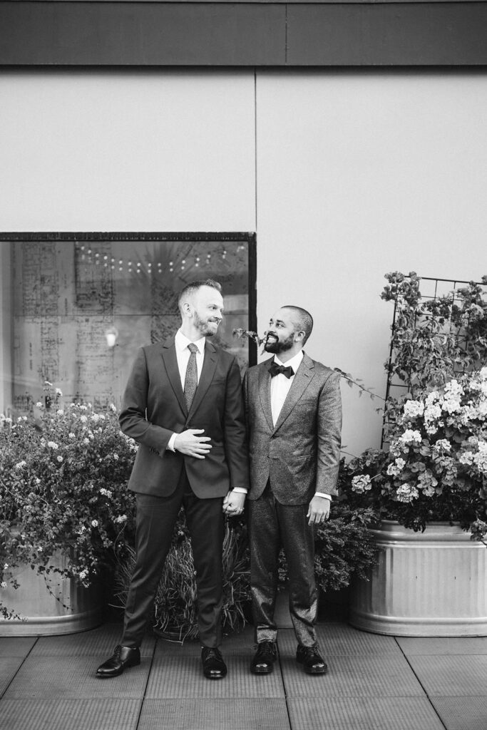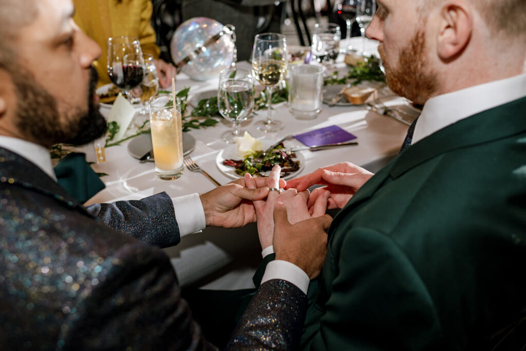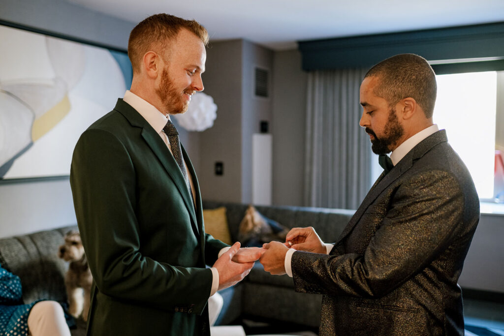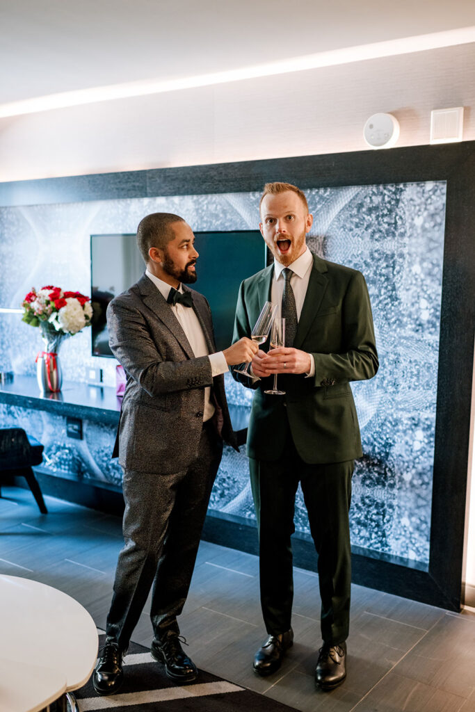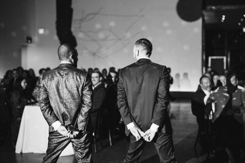 J + Q’s San Francisco wedding was nothing short of a celebration of love, laughter, and a little bit of sparkle, okay, a lot of sparkle. From their custom suits, insane disco ball installation, incredible performance by Miss Rahni, and showtunes singalongs, it was an epic party!