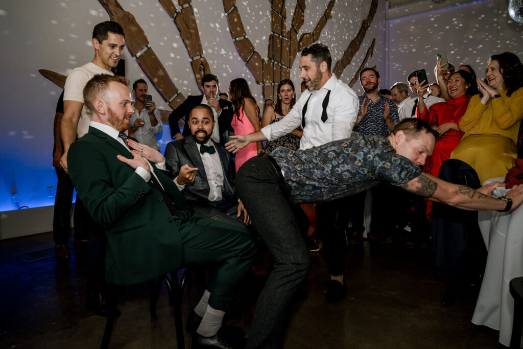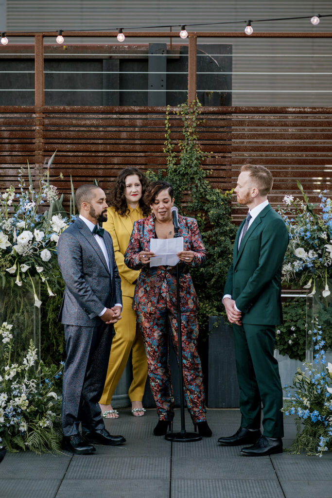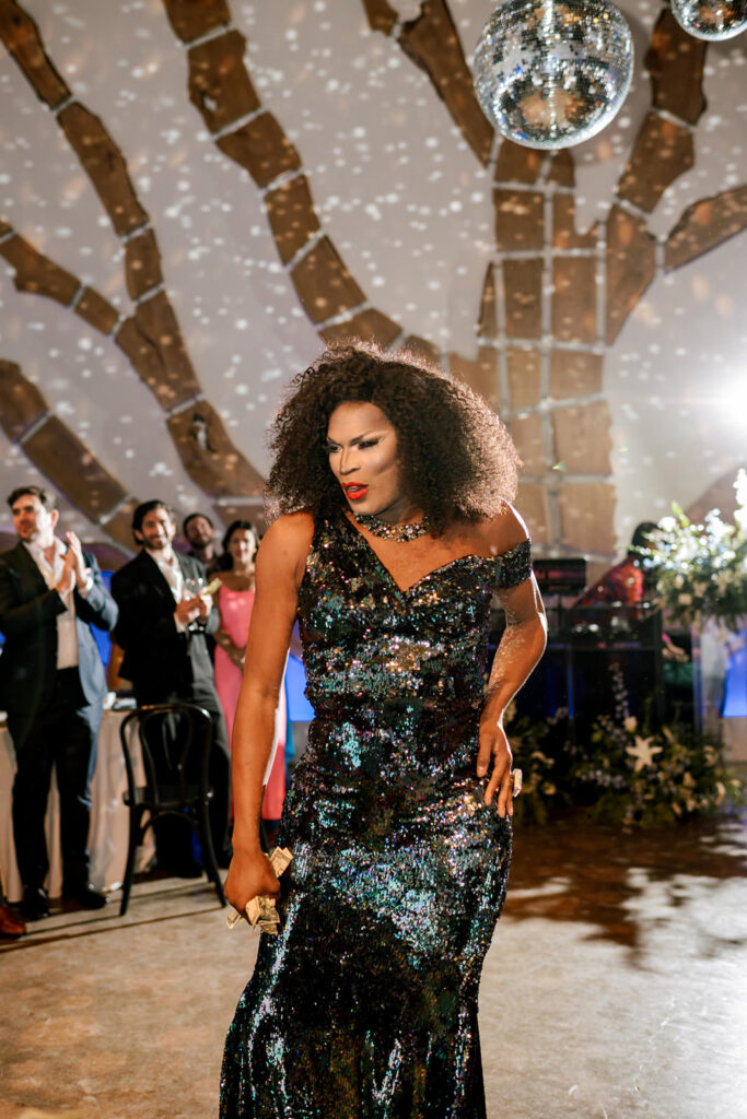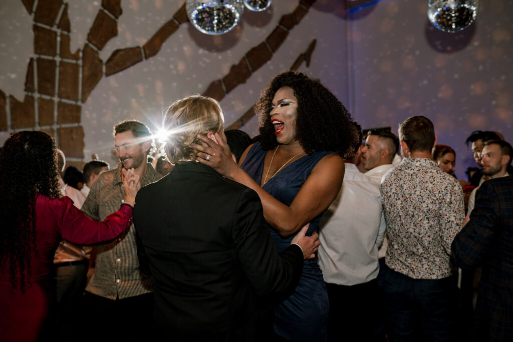 The ceremony was intimate and heartfelt, with readings by friends and family that brought smiles, laughter, and maybe a few happy tears. And then the party kicked off. Miss Rahni set the dance floor on fire (while guests opened envelopes with some dollar bills to tip and some San Francisco Drag scene eduction) getting everyone moving and bringing a joyful, celebratory energy that lasted all night.