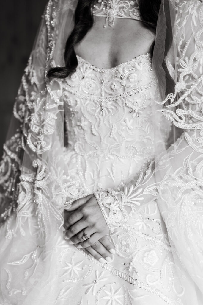 D’s fashion moments were unforgettable. Her ceremony dress was custom-made in Egypt, the result of multiple trips and countless fittings – a labor of love that paid off in every intricate detail. For the reception, she changed into a vintage Oscar de la Renta gown that brought all the glamour and drama to the dance floor.