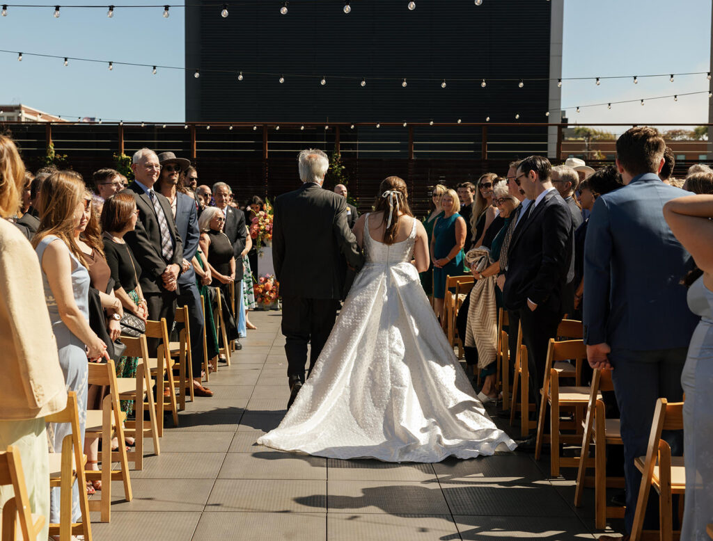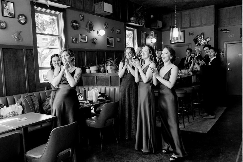 Before the ceremony, the couple shared their first look at Lost Resort, the very bar where they had their first date. It was the perfect full-circle San Francisco moment – intimate, nostalgic, and completely them. From there, the celebration moved to The Pearl, one of the city’s most versatile industrial-chic wedding venues, where the party truly began.