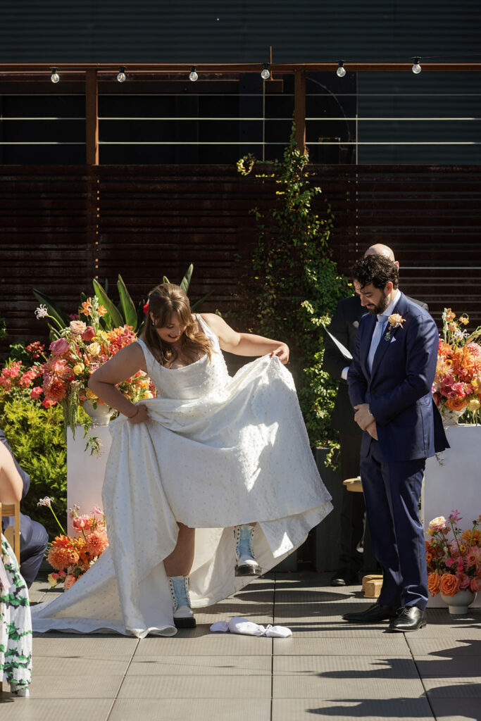 And then there were the boots. The bride wore epic Doc Martens, originally a practical choice due to a rock climbing injury, but they ended up becoming one of the coolest style statements of the night. Effortlessly confident, a little rebellious, and perfectly aligned with the vibe of the day.