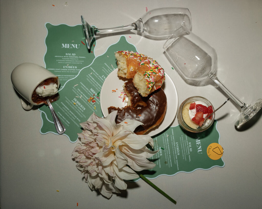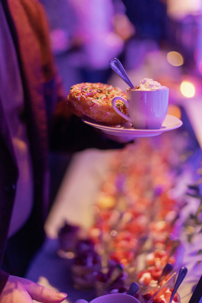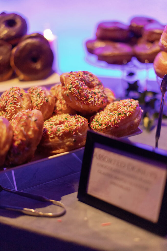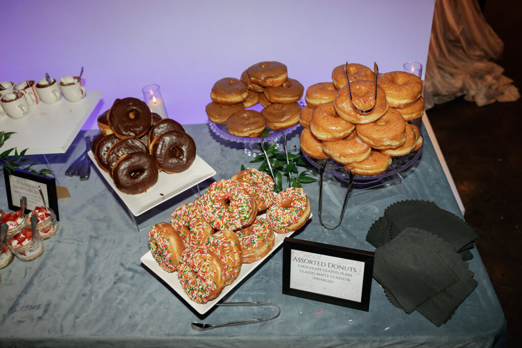 The night ended exactly how it should: with a full dessert bar, including donuts (the bride’s most important request, non-negotiable), before everyone headed next door to School Night for an after-party that kept the celebration going.